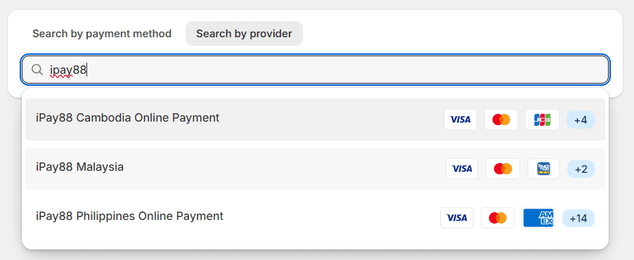 Click on “search by provider” and type “ipay88” in the search box. Select “iPay88 Malaysia”